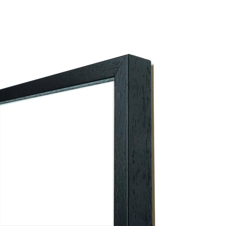 Kvalitetan okvir europske proizvodnje s pleksiglasom i MDF pločom. Na stražnjoj strani sadrži čelične nosače za obje strane za vješanje. Ne sadrži paspartu.
