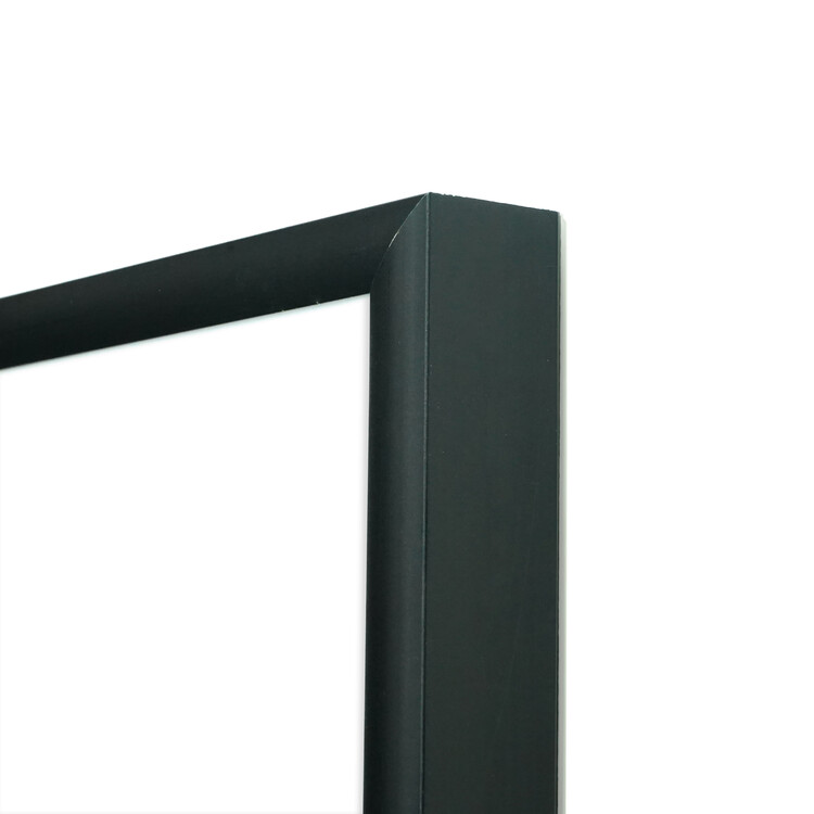 Kvalitetan okvir europske proizvodnje s pleksiglasom i MDF pločom. Na stražnjoj strani sadrži čelične nosače za obje strane za vješanje. Ne sadrži paspartu.
