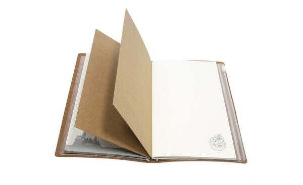Luksuzna kožna bilježnica. Idealni suputnik za putovanja. Izrađena od umjetne kože. Bilježnica sadrži: 40 liniranih stranica, 40 točkastih stranica, 3 džepa za kartice, 1 veći džep za sitnice ili bilješke.