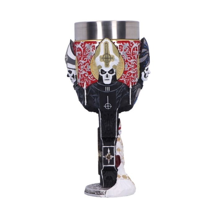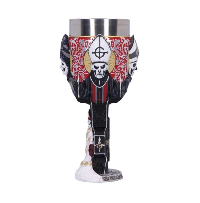 Službeni pehar Ghost, ručno oslikan, s prikazom evolucije Papa Emeritusa oko cijelog oboda i uklonjivim umetkom od nehrđajućeg čelika; za tople i hladne napitke.