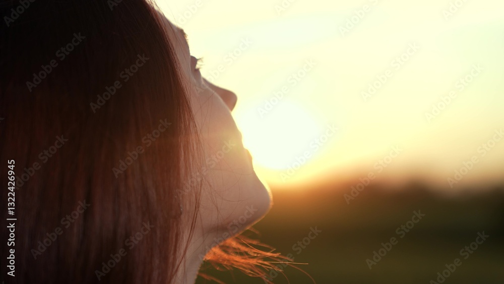 Slika na platnu girl look sky sunset gaze, girl look sky thoughtful horizon, girl look sky golde