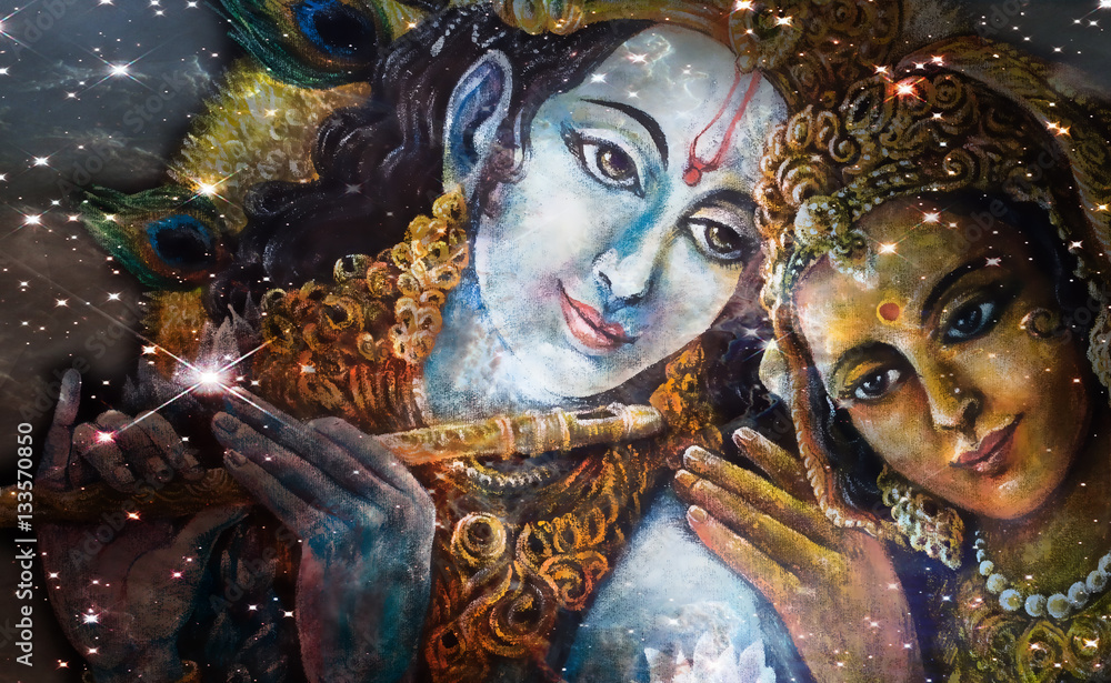 Slika na platnu Krishna and Radha, beautiful hindu divine couple, painting collage