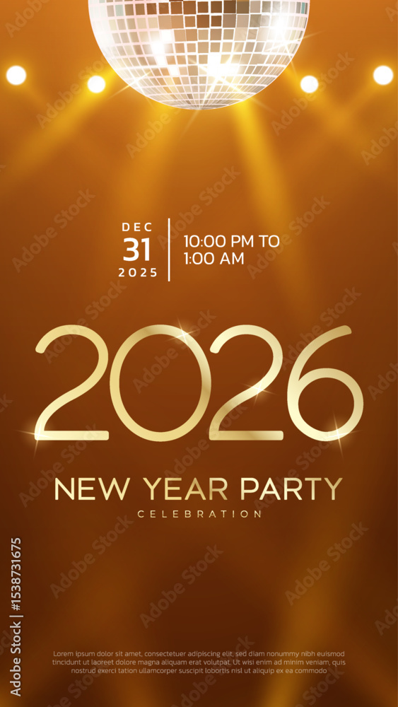 Slika na platnu 2026 Happy New Year club poster Background for your Flyers and Greetings Card graphic or new year themed party invitations
