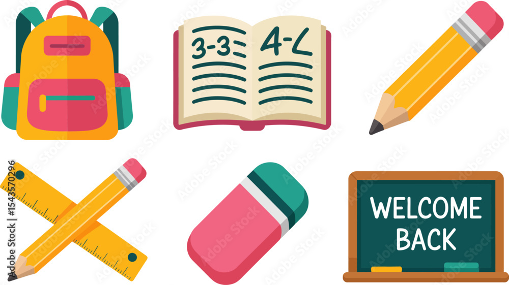 Slika na platnu Back to school icon pack with backpack notebook pencils eraser chalkboard and ma