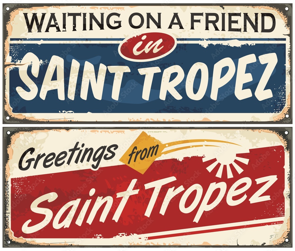 Slika na platnu Saint Tropez retro signs set on old vintage metal texture.