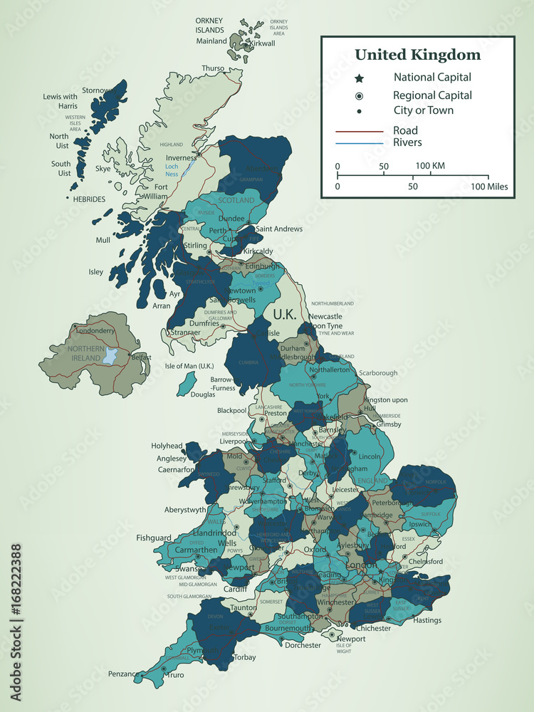 Slika na platnu United Kingdom map with selectable territories. Vector