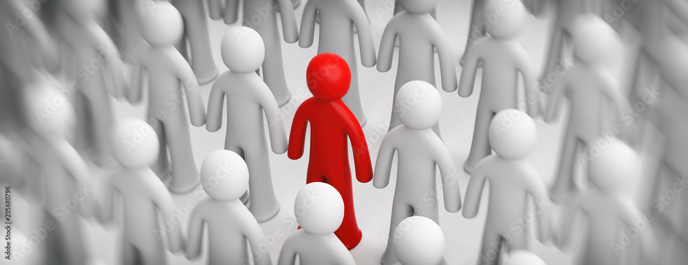 Slika na platnu Blur crowd of white human figures, one red figure on white background, banner