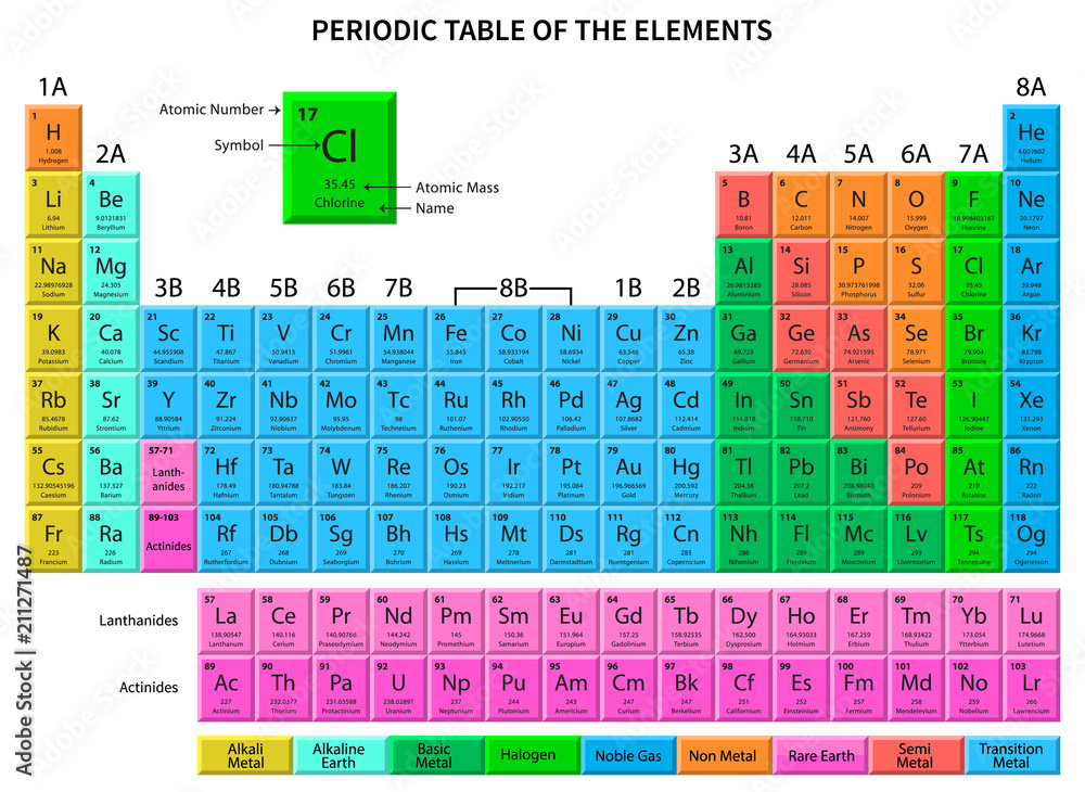 Slika na platnu Periodic Table of the Elements. Vector Illustration