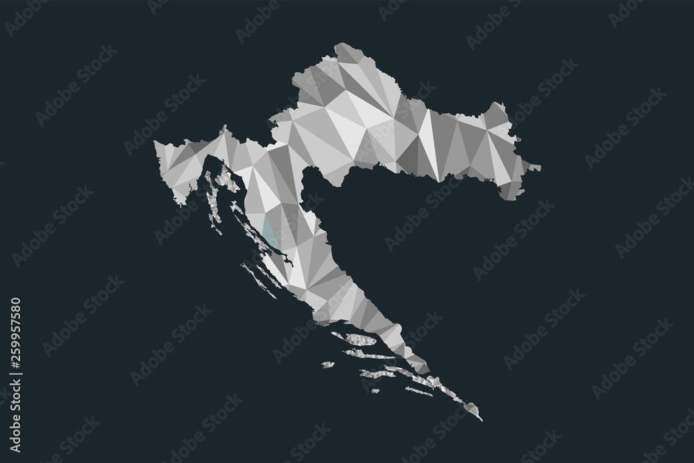 Slika na platnu Low poly Croatia map vector of white color geometric shapes or triangles on blac