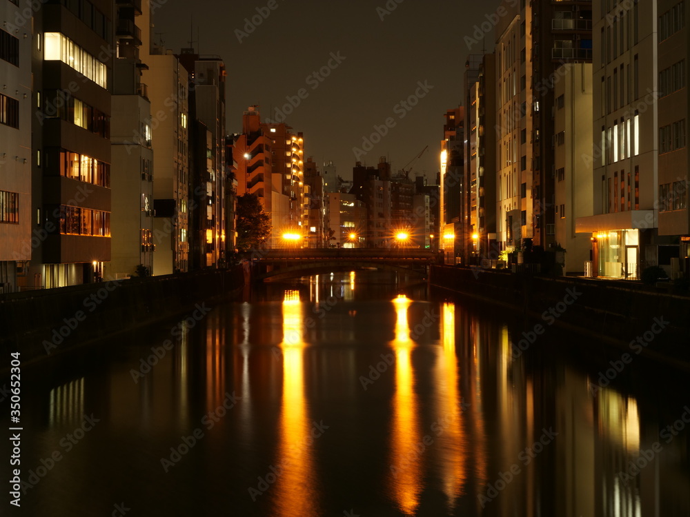 Slika na platnu night view of the Akihabara city and Kanda river