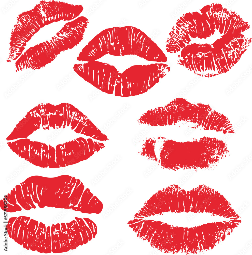 Slika na platnu Kiss icon, Red lips silhouette set, EPS Vector