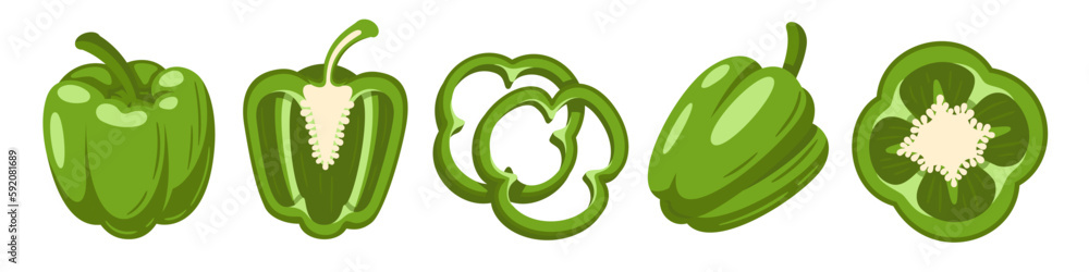 Slika na platnu Sweet green bell peppers set isolated on white background