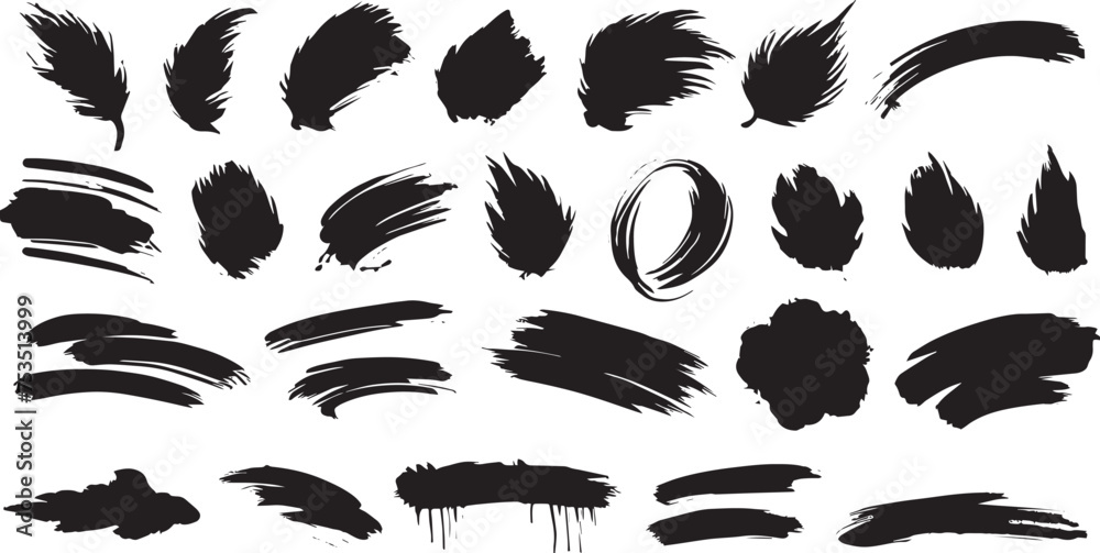 Slika na platnu "Variegated Grunge Brush Strokes Collection on White Background