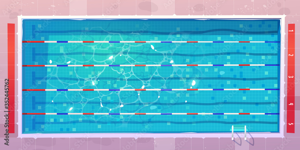 Slika na platnu Sport pool, top view with blue ripped water, ceramics floor and lanes or paths for dip