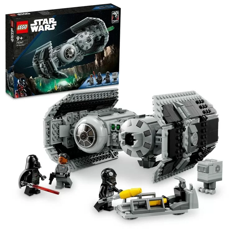 Star Wars: The Empire Strikes Back fans can play out adventurous missions to defeat the Rebel Alliance with the LEGO® TIE Bomber (75347) model. The aircraft boasts an opening minifigure cockpit, torpedo drop function and 2 shooters. The set also includes minifigures of Darth Vader, Vice Admiral Sloane and a TIE bomber pilot, and a LEGO Gonk droid figure and a torpedo cart. This action-packed set makes a great gift for Star Wars™ fans aged 9 and up. Digital instruction Download the LEGO Builder app for an even more fun creative experience. It includes digital building instructions, intuitive tools for zooming and rotating the model that kids can use as they build, and much more. Amazing Building Sets Since 1999, the LEGO Group has been creating replicas of Star Wars spaceships, vehicles, locations and characters, offering a wide range of amazing building sets for fans of all ages.