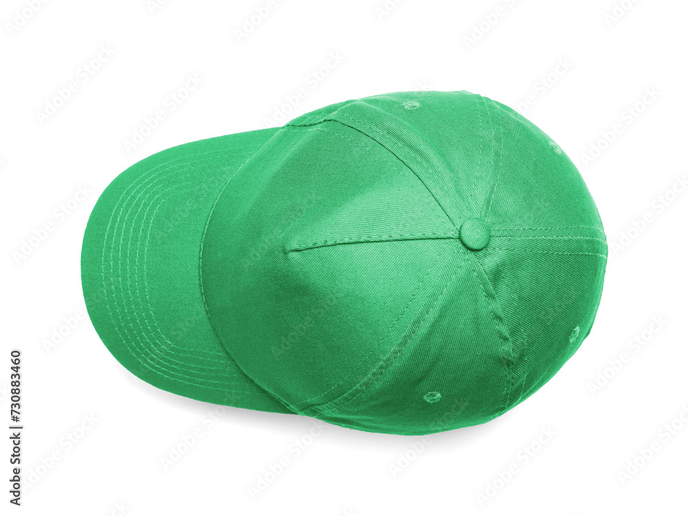 Slika na platnu Stylish green baseball cap isolated on white, top view