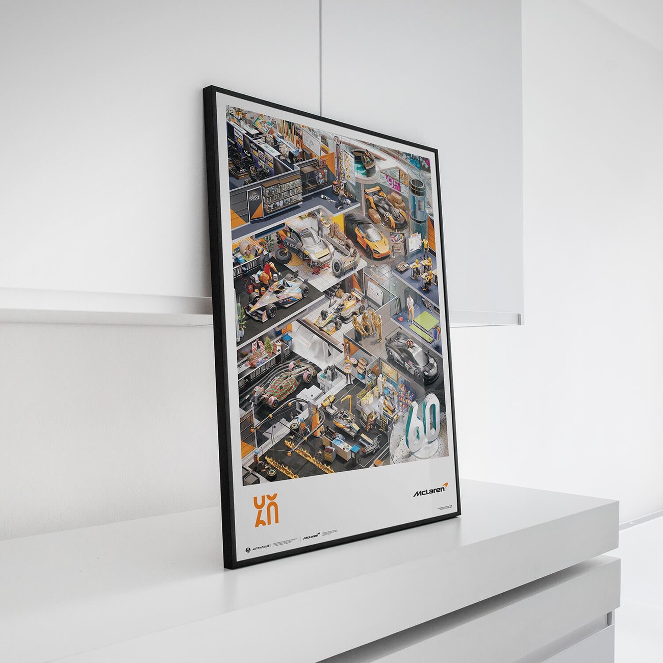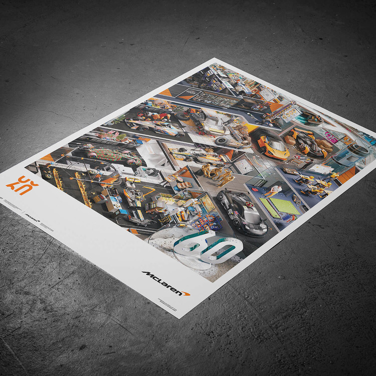 As 2023 comes to an end, it is time to celebrate McLaren’s 60th Anniversary one last time. Created by the artist Richard Parry for McLaren Racing, the design features all of McLaren’s endeavors in the racing and automotive world, from paying tribute to the legends of the past, to building the future. Finished off with many easter-eggs to be found, it’s the ideal present for every McLaren fan and a perfect way to wrap up the anniversary year.